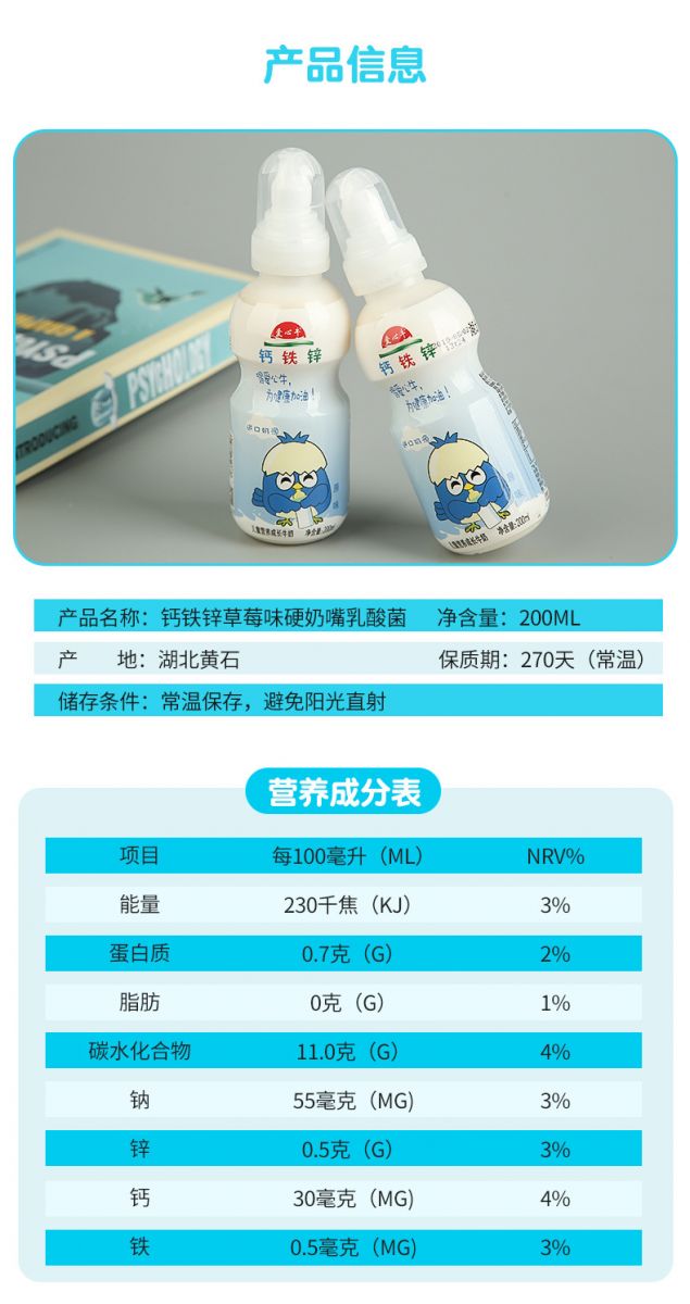 Ca-Fe-Zn primary flavor 1*24*200ml Children yoghurt series